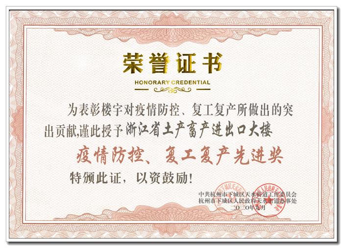 近日,省土畜因疫情防控和復工復產表現(xiàn)突出、對地方財政貢獻成績顯著、促進天水地區(qū)樓宇經濟社會發(fā)展成效明顯,被天水街道授予“2019年度天水地區(qū)樓宇經濟優(yōu)勝單位二等獎”、“疫情防控、復工復產先進獎”兩項榮譽稱號。