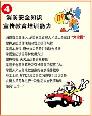 22.消防安全“四個能力”:檢查消除火災隱患能力、撲救初起火災能力、組織人員疏散逃生能力、消防宣傳教育培訓能力。